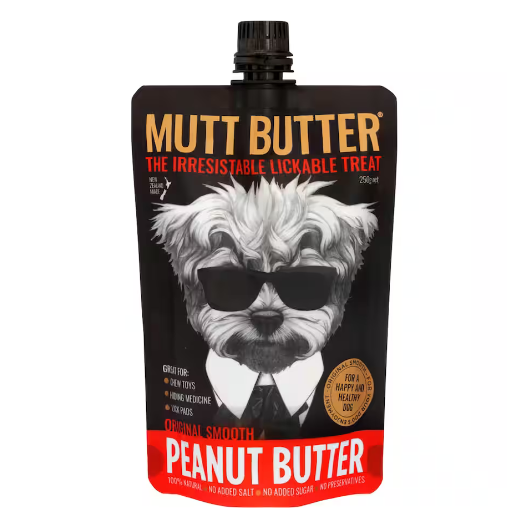 Now it’s even easier to treat your dog to peanut butter with our Mutt Butter easy squeezy pack. It's a no-mess, no-fuss way to fill dog chew toys, lick pads, or if you’re out and about, let them lick a squeeze right from the spout!